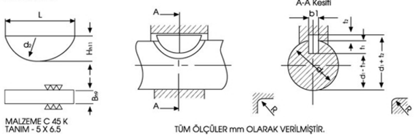 Kama ölçüleri standart olur. Göbeklerde açılması gereken kama yuvaları ile ilgili aşağıdaki tabloya bakılarak seçim yapılabilir.